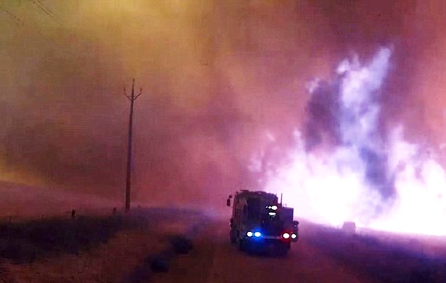 Caught on video: Wild scene as firefighters overrun by wildfire