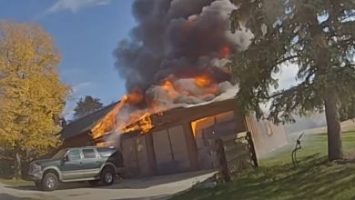 Caught on camera: Woman rescued from basement of burning Ohio home