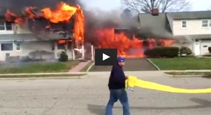 Early video: Squatter pulled from burning, vacant Long Island house